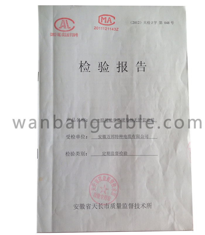 圖片名稱:檢驗(yàn)報告-一般用途單芯硬導(dǎo)體無護(hù)套電纜 所屬企業(yè):特種電纜-安徽萬邦特種電纜有限公司專業(yè)特種電纜生產(chǎn)商 更新時間:2013.12.06
